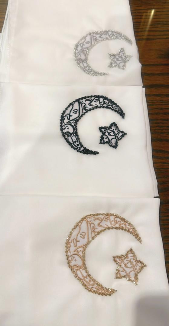 Women beaded head scarf ( hijab ) moon design Length : 170-180 width :65.