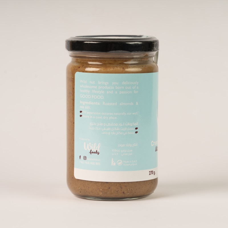 All natural, preservatives free, crunchy grounded almonds. Ingredients: Roasted almonds & sea salt.