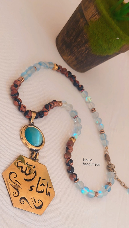 Gemstone from tiger eye and moonstone and the necklace is handmade copper
